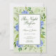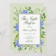 Den här "The Night before" blåa hydrangea rehearsal Midinbjudan med din qr-kod är perfekt för party. Det är vackra vattenfärgblommor och rent marint blåskript med mjuk grönt för blommorna och bladverket gör det till en häpnadsväckande, modern men klassisk historia! Om du har din Qur-kod på baksidan blir det enkelt och bekvämt för dina gäster att svepa till din repetitionsmiddag. Det är enkelt att anpassa dessa inbjudningar genom att välja "Anpassa den här mallen", skriva in informationen och ladda upp din frågekod. Om en blixt kommer du att få se dina fantastiska repetitionsmiddagsinbjudningar.