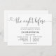 Bröllop Rehearsal Middag inbjuden med ord "natten före" i ett sött kalligrafiskript med enkelt hjärta.