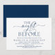 Modern romatisk kalligrafi, marint blått skript, Bröllop Rehearsal Dinner-inbjudan (natten före). Det är perfekt för er bröllop-repetitionsmiddag firande party, före er bästa dag. Lägg till informationen i matchande text. Alternativ för att inkludera värd eller sponsrad av båda föräldrarna.