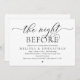 Meddela gärna att du är i stil med vårt moderna tematkort (Nattinnan) för bröllop-repetition från firande. Det är idealiskt för par som har bestämt sig för att fira natten före deras stora dag. Med sin sofistikerade men lekfulla utformning kommer inbjudan säkert att ange tonen för en händelse som inte kan glömmas bort. Inbjudningskortet har en modern romantisk skriptutformning som ger dig en aning elegans utan tidpunkter i firande. Designad av TeeshaDerrick