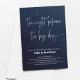 "Natten före den stora dagen." Din inbjudan till repetitionsmiddagen på en vacker stjärnnattsbakgrund.