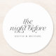 Enkel och elegant runt underlägg för din repetitionsmiddag, med "natten före" i klassiskt svart skript. En tidslättslös utformning som gör firande mer personlig berört.