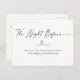 En enkel design med ett tunt, uppdaterande kalligrafiskt skript som meddelar Natten före repetitionsmiddagen. Anpassa enkelt din personliga information, inklusive ditt monogram initialer på baksidan av kortet. En minimalistisk utformning som kan paras med vilket modernt tema som helst i bröllop.