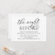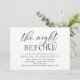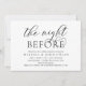 Meddela gärna att du är i stil med vårt moderna vita och svarta tematkort (Nattinnan), bröllop-inbjudan till firande. Det är idealiskt för par som har bestämt sig för att fira natten före deras stora dag. Med sin sofistikerade men lekfulla utformning kommer inbjudan säkert att ange tonen för en händelse som inte kan glömmas bort. Inbjudningskortet har en modern romantisk skriptutformning som ger dig en aning elegans utan tidpunkter i firande. Designad av TeeshaDerrick