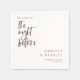 Den minimalistiska bröllop-repetitionsmiddagen är välkommen napkin med handskrivet skript som säger "välkommen till natten före".