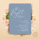 Meddela dig lyckligt i stil med vårt moderna promemoria för estetiskt dammigt blått tema (The Night before) bröllop-repetitionskortet för firande. Det är idealiskt för par som har bestämt sig för att fira natten före deras stora dag. Med sin sofistikerade men lekfulla utformning kommer inbjudan säkert att ange tonen för en händelse som inte kan glömmas bort. Inbjudningskortet har en modern romantisk skriptutformning som ger dig en aning elegans utan tidpunkter i firande. Designad av TeeshaDerrick