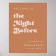 Välkommen till Natten före: repetitionsmiddagsskylt. Ett tema för chic: Anpassa vintage- och snyggt-typografi för din bröllop-stationär, med ett färg-tema för brunt socker. Det är enkelt att blanda och matcha med vårt liknande kontorsmaterial som finns i bränd orange, terracotta och persiko-rosa. Anpassadet färg och bakgrunder.