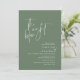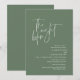 Natten före. Modern romantisk minimalistisk design tema, bröllop-inbjudan till repetitionsmiddagsinbjudan (i grönt, porträtt orienteringstema). Planerar man en bröllop-dagsljö firande med den blivande Briden och Groom, före deras högtid? Inbjudan gästerna med det här perfekten, Bröllop Rehearsal Dinner Inbjuation Card. Redigera det enkelt med information om din repetitionsmiddagsinbjudan. Inbjudningskortet finns i antingen/både tryckta kopior och hämtningsbara digitala filer.