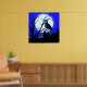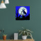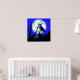 Denna poster har ett natttema med ett uggla som tränger in i gren med silhuetter från träd och ett stort måne i bakgrunden.