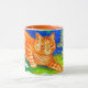Kaffe Mugg med Louis Wains målning Cat Stalking (1860-1939). En orange strimlad katt går en grönt fält på natten. Vita, lila och röda blommor finns i förgrunden. En underbar gåva till kattälskare och engelsk konst.