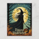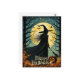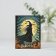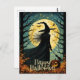 Det här Halloween-vykortet har en häxa på en fullt-skogsbakgrund.