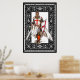 Knight-templar i pansar-poster visar en medeltida korskoppling från medeltida motorland i fullt pansar med den röda symboliska korna av England som kommer från korstågen när Kung Richard Lejona hjärtat var på tronen. Omgiven av ett arabiskt mönstrat gräns i svart och vitt, går Knight Templar fram mot dig med svärd i hand och sköld på hans arm. Gör en fantastisk bild för alla fantastiska eller historiska spelare, spel eller historik älskare av en bristisk historia och interaktiva spel.