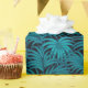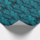 Turkos och tealgrafik handflatan lämnar på marin blå bakgrund.