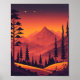 Nattscenen i bergslandskapet och träd med orange, rött, gult och svart färg. Skrivbara alternativ för väggkonst eller digital nedladdning.