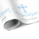 Första nattvardceremoni för älskvärd personlig som slår in papper för pojke. Ljusa pastellfärgade blått korsar med fauxdiamanten i mittet, och nattvardsgången i modernt skrivar brev. Esy som redigerar och som tillfogar pojke namn. Perfekt för gåvainpackning eller bordspringer.