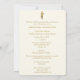 Första nattvarden, eukaristi, katolsk sakrament, vintage sakral design. Denna vördnadsfulla inbjudan har en traditionell eukaristisk komposition med ett guldkors, vete, druvor, kalk och hostier, som symboliserar den heliga mässan och livets bröd.