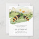 Två vattenfärgade honungsbin under flygning mot en landskapsbakgrund på detta vackra blåtemade bröllop-objekt. En del av en större samling omfattar den här uppsättningen bröllopsinbjudningar (budgetinbjudningar och vanliga) inbjudningskort för möhippa, brudens sida-gåvor till bridisor, Maid of honor och Mor av brud och brudgumm, märkre, etiketter och annat.