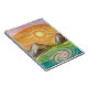 A serene and spiritual landscape painting featuring majestic mountains under a glowing sun, in the heart of the lake , a mystical glowing spiral vortex represent energy and flow . this artwork combines the beauty of nature with a touch of cosmic wonder