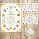 Celebrate your growing bundle of joy with this sweet rustic baby shower invitation. It's featured in a beautiful mix of rustic lettering and elegant vintage script, creating a warm and timeless look. Surrounding the text in a soft oval arrangement are delicate garden and nature-inspired illustrations that reflect a charming orchard and vegetable garden theme.