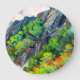 Ett sjudande landskap med en lush-skog på tåliga bergskläder som brinner med hösthuvar. Misty luft väver genom träd och skapar en seren och drömmande atmosfär. En perfekt blandning av fet färg och uttryckliga penseldrag ger liv åt naturen.