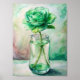 Bilden har en pulserande grönt blomma elegant placerad i ett rent glas vas. Blomman står ut med sina lush, levande petaler och utstrålar en färsk och livfull energi. Insynen i vas gör det möjligt att se fullt på blomsterstammen och vatten inuti den, vilket förbättrar det allmänna estetiska området. Mjuka naturliga ljusfilter genom, som framhäver det känsliga strukturen i petalerna och skapar en serenatmosfär. Denna enkla men ändå slående arrangemang tillför en del av naturens skönhet till alla platser.
