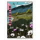 Natures Costal Meadow, wildblomma Japansk Vintage Sjölandskap med fiskmås som flyger över havet.