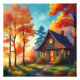 Naturlandskap med stuga i skogen fototryck
