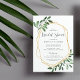 Vackra trätemat inbjudningskort för möhippa har grått-bokstäver inramad av ett faux guld-geometriskt gräns och rik-jägare, vattenfärgsblad, löv och vita bär. Ett modernt val i ett naturligt färg-system för boho eller naturen temade möhippor.