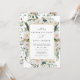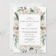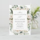 Denna akvarell rustic bröllopsinbjudan har vintergrönska med vita blommor i guld chic ram. Det är perfekt för berg, rustic, vinter, bakgård, lada, vår, högtid bröllop med en touch av elegans.