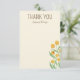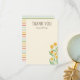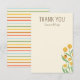 Skicka ett tackmeddelande efter födelsedagsfester eller speciella evenemang med detta naturinspirerade platta brevpapper med lättredigerad text. Ändra "tack"-rubriken till ett meddelande efter eget val och redigera namnet för en verkligt unik present. Charmiga illustrerade, gula, runda krusbärsblommor blommar på framsidan med en liten nyckelpiga detalj medan baksidan har en färgrik regnbågestrimmig design med retroinspirerade och könsneutrala färger som mintgrön, himmelblå, rost, gyllengul och korallröd på en krämfärgad bakgrund.