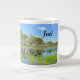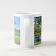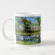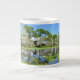 Naturen reflekterar jumbo mugg med en flod, träd och moln som reflekteras i vatten. Bilden togs i SW Florida, USA, i ett naturreservat. Namn vid mugg kan ändras.