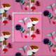 En vacker vintage inspirerad väv med blått, rosa och vit ros i blommigt buketter. En snyggt, klassad mönster, lämplig för många farkoster eller syprojekt och tillgänglig i olika stilar och längder av tyg.