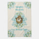 Naughty Chickens Ljugit Ägg! Vintage kycklingar på elfenbensbakgrund med scrollsar av turkos och blåvita och vita blommor.