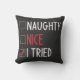 Naughty Nice, jag försökte med Dekorativ kudde, den vackra, svarta och röda julen. Lägg till ett streck med humor till din helgdag-dekoration med superskojet Zazzle-julklapp! Med den fräcka frasen "Naughty, Nice, jag försökte," är det perfektens tillbehör att få dina gäster att kickla och din soffa lite kozierera den här festsäsongen. Vare sig du har varit stygg eller trevlig påminner den här kudden alla om att du åtminstone har ansträngt dig. Sprid skratten och helgdag med den här vismliga julen dekoration!