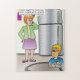 Ett pussel med en rolig tecknad om barn som använder svära på ord i skolan. Originalteckningar efter DBcartoons.