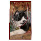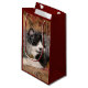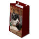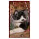 Svartvit tuxedo kattunge glömmer bort den stygga eller trevliga stiptionen och leker med den Juldekorationer katten älskar små julklappar