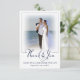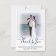 Skicka förtryckta bröllop-tackmeddelanden eller handskrivna anteckningar om uppskattning med dessa nautiska tematiska fototackkort som innehåller två foton (en på vardera sidan) och en modern handskriven skrivstil typografisk titel accentuerad med en ankare i marint blått och vitt. ASSISTANS: Om du behöver hjälp med designändringar eller anpassning, överför designen till en annan produkt eller om du vill samordna produkter kontaktar du designern INNAN ORE ORDERING via Zazzle-Chatta eller makeitaboutyoustore@gmail.com.