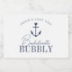 Dags för hennes sista segel före slöjan! Få party att börja på din nautiska eller roterande bachelorette-fest med den söta personligen mini-mousserande vin eller champagneetiketter. Utformningen har en fyrkantig blå frakts fästpunkt som fylls av ett litet hjärta. Tre linjer anpassningsbar text gör det möjligt att göra en fullständig anpassning. Den visas med "[Bride's] Last Sail" och "Bachelorette Bubly". Färg kan ändras för att matcha det färg du föredrar med Zazzles verktyg.