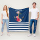 Nautical,Anchor Flowers Navy Blue Rand Fleecefilt