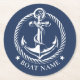 Nautical Anchor Logotyp Navy Blue Boat Namn Underlägg Papper Rund