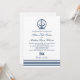 Sätt tonen för en klassisk kustfirande med denna bröllopsinbjudan med en marinblå ankermonogram-krön och djärva marinblå randiga accenter. Den rena vita bakgrunden och eleganta namn i skrivstil känns tidlösa, krispiga och lätta att anpassa. Perfekt för strand-, yachtklubb- och nautiskt-temade bröllop.