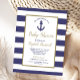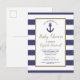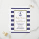 Nautical Anchor Navy Blue Striped Boy Baby Shower Inbjudan Vykort