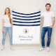 Med den här filten får du en nautisk design med marinblått och vitt rand en rep-gräns-cirkel som är accentuerad med ett ankare och trendig handskriven text för din familj namn. Det här är perfekt till ditt strandhus, sjö hem eller stuga.