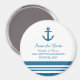 Elegant och klassisk Nautisk ankare Spara datum magneter med enkelt båtankare och en rad rand i mörkens marinblått och vitt. Det här temat för sjöstranden sparar datumet och kan enkelt anpassas med dina uppgifter om bröllop. Om du vill ha fler anpassningsalternativ klickar du på knappen Anpassa.