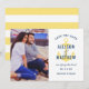 Ljust och glatt är detta nautiska spara datum som har ett soligt gult ankar-motiv mot krispigt vitt med feta namn i marinblått och ett randigt kort bakgrund som perfekt fångar sommarens strandstämning. Ladda upp ditt foto och anpassa namn och datum med lätthet. En perfekt match för soliga strand-, sjö- eller festivalinspirerade utomhusbröllop.