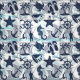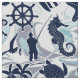 En roligt sommar mönster i nautiska inslag, inklusive ankare, fiskmås, stjärnfisk och många andra, allt i marinblått med snurrar och vågblåa accenter. Skapa strandhus eller terrassdekoration, strandkläder eller båtkläder med öga som fångar nytt mönster. Sök i ID839 om du vill se andra produkter med den här designen och ytterligare alternativ för färg.