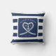 Nautical blå och vit randig bröllopskudde för ett nygift par. Perfekt för ett Navy (militärt) eller sjöhusbröllop. Designen har ett hjärtformat rep med ankar och parets initialer i mitten. Personifiera den med din bröllopsinformation.