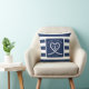Nautical blå och vit randig bröllopskudde för ett nygift par. Perfekt för ett Navy (militärt) eller sjöhusbröllop. Designen har ett hjärtformat rep med ankare och parets initialer i mitten. Personliggör det med din bröllopsinformation.