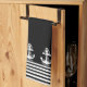 Nautical Black White Rand och White Anchor Kökshandduk