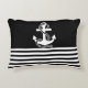 Nautical Black White Rand och White Anchor Prydnadskudde